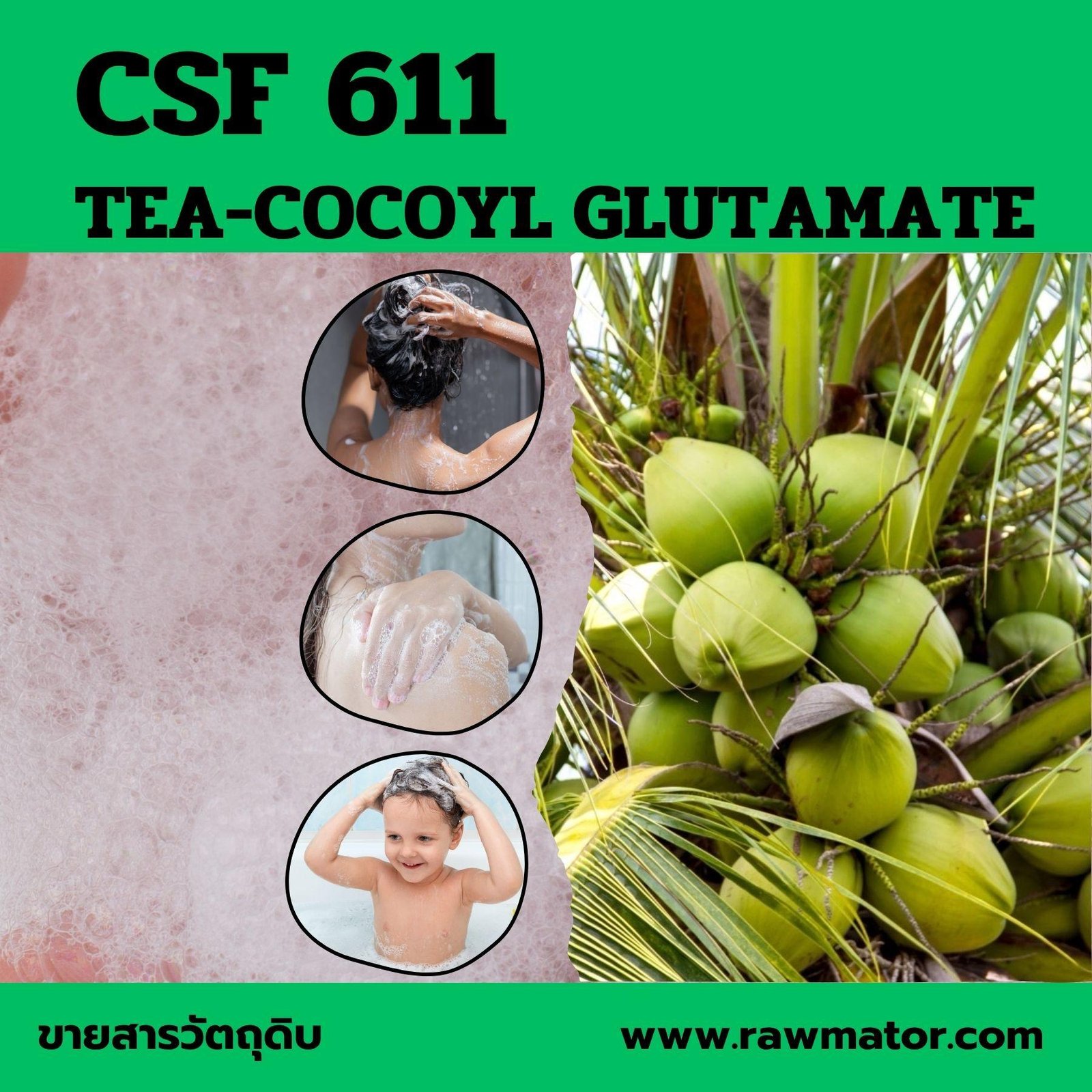 INCI Name (ชื่อสากล) : TEA-COCOYL GLUTAMATE (and) WATER